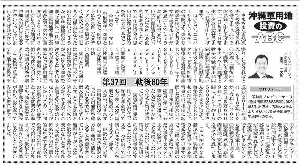 週刊不動産経営『沖縄軍用地 投資のABC』
