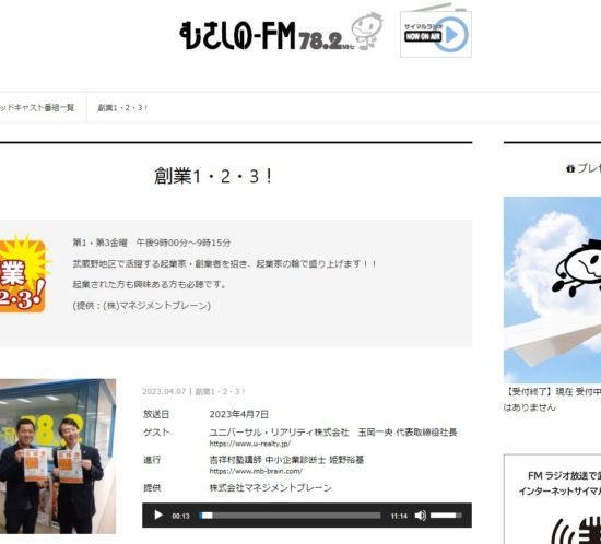 ラジオ出演『むさしのFM 創業1・2・3』で、書籍インタビューを掲載いただきました!