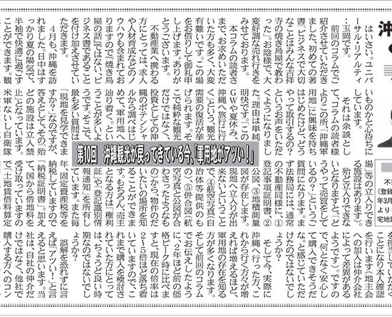 連載第12回目『沖縄軍用地投資のABC』