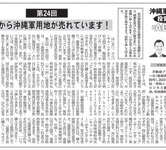 【連載第24回】週刊不動産経営『沖縄軍用地 投資のABC』